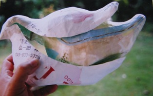 それは夏休みに上高地に来る子供さんや親御さんに、ライチョウのお話や自然保護の話をしながらライチョウの姿をした張り子の貯金箱を紙を貼り合わせて作って貰うことです。 初めは粘土で遊んでいたのですが、そのうち思いついて粘土で作ったライチョウを型にして、ライチョウの張り子を紙で作ってみました。 それを原型にしてその上に紙を貼り重ねて張り、それに切れ目を入れて、割ります。