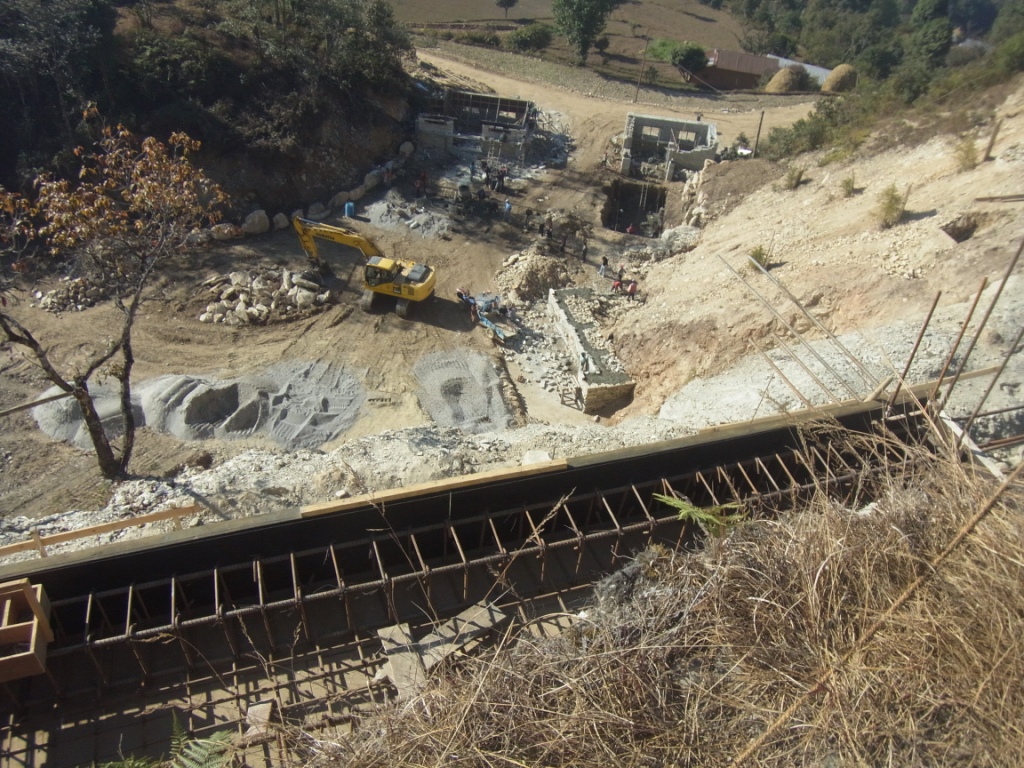 機材が入り斜面への工事が始まっている、下に村の道が見える。